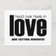 Carte de notification de mariage 'Tête en l'air' audacieuse et chic en noir, avec une typographie simple et moderne. Cette carte de notification de mariage élégante est parfaite pour informer vos amis et votre famille de la date et du lieu de votre mariage. Très facile à personnaliser, il suffit d'ajouter les détails de votre grand jour dans les champs de texte prévus. Cliquez sur "Personnaliser" pour trouver d'autres options de personnalisation. La couleur de fond est également personnalisable.