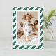 Elégante carte verte de Nouvel An avec rayures modernes, flocons de neige et étoiles. Personnalisez facilement en ligne.