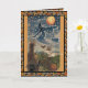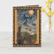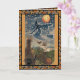Cette carte d'Halloween montre une nuit étoilée avec une sorcière délimitée par des étoiles survolant le ciel au-dessus de champs de citrouilles. Le design est tiré d'une carte d'Halloween de 1913.