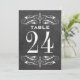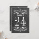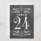 Un travail de défilement blanc orné et une typographie vintage ressortent sur un fond sombre de tableau noir sur cette charmante carte de numéro de table de mariage. Les fioritures dessinées à la main et les lettrages classiques apportent une élégance rustique à la disposition des sièges de votre réception. Le numéro de table est facile à personnaliser. Chaque numéro de table doit être personnalisé individuellement et ajouté au panier un à la fois.