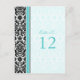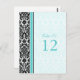 Utilisez l'option personnalisée pour modifier le numéro de table sur ces élégantes cartes de table à damas bleu turquoise, noir et blanc. REMARQUE : Vous DEVEZ modifier le numéro de table sur chaque carte et ajouter un de chaque numéro à votre panier. Si vous souhaitez effectuer des modifications plus importantes, notamment modifier la police, la couleur de police ou la taille de police, utilisez l'option personnaliser.