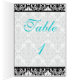 Carte de numéro de table Aqua, White et Black Dama