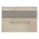 Carte simple et élégante Rustic Lace Numéro de table avec un aspect papier texturé vintage arrière - plan et une bordure motif en dentelle douce et dainty en gris. Facile à customiser, il suffit d'ajouter le ou les numéros de table appropriés dans le champ de texte fourni. Cliquez sur "Customiser" pour trouver d'autres options de personnalisation.
