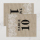 Carte de numéro de table de jute et dentelle rusti