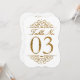 Carte de numéro de table de mariage à effet pailleté or (03)