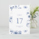 Ajoutez une touche botanique romantique à votre réception de mariage avec cette carte de numéro de table à fleurs bleues poussiéreuses. Avec des fleurs aquarelles peintes à la main dans des teintes bleues douces, ce design élégant guide vos invités avec style et charme. Parfait pour les mariages en plein air, les célébrations classiques ou les événements sur le thème du printemps, il complète parfaitement toute suite de mariage florale.