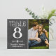 La calligraphie de style craie et une grande photo sur un fond de tableau noir créent une carte de numéro de table de mariage rustique charmante. Les noms des mariés et la date du mariage sont affichés en lettrage décoratif sous la photo. Pour personnaliser, tapez le numéro de table, cliquez sur « Modifier » à côté de la photo par défaut pour télécharger la vôtre, puis ajoutez cette carte de numéro de table individuelle à votre panier. Répétez l'opération pour tous les numéros de table dont vous avez besoin.