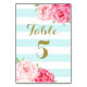 Cartes de numéro de table en bleu ciel pastel clair et rayures blanches motif avec fleurs d'aquarelle rose vintage. Customisez ces cartes avec vos numéros de table pour un ajout spécial à vos tables mariages. Convient également pour les anniversaires et fêtes d'anniversaire.