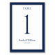 Une carte classique bleu marine et blanc mariage numéro de table qui peut être customisé avec n'importe quel numéro de table. Les graphiques apparaissent des deux côtés de cette carte.