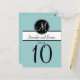 Elégant Mariage simple bleu noir noir Monogramme Cartes Numéro de table. Elke Clarke © Ces cartes postales de numéro de table de mariage sont affichées avec un arrière - plan bleu clair, un monogramme blanc initial sur une étiquette de cercle noir et les noms de mariée et de mariée sur une bande noire et blanche. Customisez avec les noms de mariée et de mariée, monogramme initial, numéro de table et couleurs de mariage en utilisant les invites de menu faciles à utiliser de Zazzle. Ce monogramme simple mais élégant design initial fonctionne pour toutes les lettres de l'alphabet et est entièrement personnalisable pour convenir à n'importe quelle combinaison de couleurs. Commandez une carte pour chaque numéro de table différent. Vous le changez à chaque numéro, puis vous l'ajoutez à votre panier.
