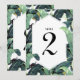 De luxueuses feuilles de bananier ornent cette carte de numéro de table de mariage moderne. Entrez dans notre boutique pour des articles coordonnés :