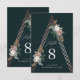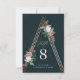 Une carte de numéro de table florale bohème avec une belle structure pyramidale en or rose avec des botaniques de rose vintage asymétriques.