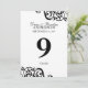 Carte de numéro de table de mariage réception de f