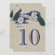 Carte de numéro de table de mariage rustique avec lin et toile de jute et paon. Ce magnifique modèle de carte de numéro de table de mariage est parfait pour un mariage vintage avec la possibilité de personnaliser avec vos initiales de monogramme. Son design unique avec deux beaux paons sur une bannière vintage et le texte "M. et Mme" dans une police bleu foncé, le tout sur un fond à effet de photo imprimée sur lin, crée une carte de numéro de table de mariage unique et élégante. Elke Clarke© Veuillez commander une carte de table avec le premier numéro dessus. Modifiez ensuite le numéro dans le menu d'édition et ajoutez la carte de numéro de table suivante à votre panier jusqu'à ce que vous ayez une carte unique pour chaque numéro de table dans votre panier. Besoin d'aide ou souhaitez une combinaison de couleurs différente, veuillez contacter luxuryweddinginvitations@gmail.com