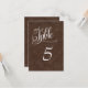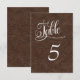 Carte de numéro de table de mariage western en cuir marron.