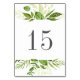Les cartes de numéro de table chic du jardin comprennent des bordures haut et bas de verdure d'aquarelle peinte vibrante dans des tons de forêt et de vert fougère, encadrant votre numéro de table en gris. Le design se répète à l'envers. Coordonné avec notre suite de faire-part de mariage Wild Meadow.