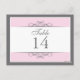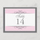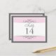 Traditionnelle mais contemporaine est au centre de cette belle carte de table. Le soft rose bordé de blanc et de gris charbon de bois constitue la base. Le panneau blanc contient les informations de la table. Conception recto-verso pour la commodité de n'importe quel angle. Disponible en couleurs alternatives avec produits correspondants. com com