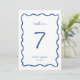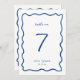 Cadre de ligne Wavy Bleu Whimsical, carte de numéro de table mariage. Veuillez noter que les cartes de numéro de table doivent être numérotées et ajoutées individuellement à votre panier. Vous pouvez modifier la couleur et les polices du cadre en sélectionnant la fonction "modifier à l'aide de l'outil de conception".