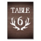 Carte de numéro de la table de mariage de cerfs en bois brun rustique. Des panneaux personnalisés pour les sièges de fête et plus. Décor de table élégant pour une réception de mariage classe. Aidez à trouver rapidement leur table et leurs sièges. Décor et décoration de table tendance. modèle de typographie vintage avec lettrage élégant. Texture arrière - plan du panneau en bois.