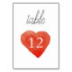 Carte de numéro de table du Mariage de coeur rouge