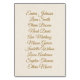 Améliorez la sophistication de votre événement avec notre Elegant Gold Text Table Numéro Card. Ce design présente un élégant script doré, avec de l'espace sur le dos pour ajouter des noms d'invités. Parfait pour ajouter une touche de luxe à votre mariage, anniversaire ou toute occasion spéciale.