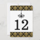 Carte de numéro de table en damassé noir et or ave