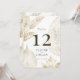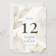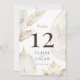 Cette carte de numéro de table de mariage délicate et élégante présente un arrière - plan blanc avec des feuilles en fausse feuille d'or. Personnalisez-le selon vos besoins. Vous pouvez trouver des produits correspondants dans mon magasin.