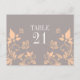 Carte de numéro de table florale papillon douce et délicate avec un fond gris poussiéreux atténué et des papillons pêche et des embellissements de vigne florale. Cette carte de table de mariage élégante est le choix parfait pour un mariage moderne et chic. Facile à personnaliser, il suffit d'ajouter le(s) numéro(s) de table approprié(s) dans le champ de texte prévu. Cliquez sur le bouton "Personnaliser" pour trouver des options de personnalisation supplémentaires.