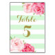 Cartes de numéro de table en vert menthe clair et rayures blanches motif avec fleurs d'aquarelle rose vintage. Customisez ces cartes avec vos numéros de table pour un ajout spécial à vos tables mariages. Convient également pour les anniversaires et fêtes d'anniversaire.