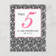 Pink Zebra Pattern Mariage Numéro de table Design de carte par Elke Clarke©2010. Customisez vos renseignements personnels, votre date de mariage et vos couleurs. Commandez une par table avec chaque numéro de table mais recevez toujours la remise en bloc pour le nombre total commandé.