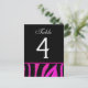 Carte de numéro de table Mariage rose et noir Zebr