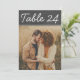 Une calligraphie en craie épaisse et un fond sombre de tableau noir encadrent votre photo préférée sur cette carte rustique indiquant le numéro de table pour votre mariage. L'aspect vintage du tableau noir se marie parfaitement avec une réception dans une grange, un vignoble ou en plein air. Pour personnaliser, entrez le numéro de table, cliquez sur "Changer" près de la photo par défaut pour importer la vôtre, puis ajoutez cette carte au panier. Répétez l'opération pour tous les numéros de table dont vous avez besoin.
