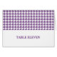 Carte de numéro de table Houndstooth simple mais élégante avec un arrière - plan motif à la mode violet et blanc houndstooth. Facile à customiser avec vos détails mariages. Pour plus d'options de personnalisation, cliquez sur le bouton Customiser.