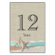Dentelle et burlap rustique avec ruban d'aqua et de pêche et imprimé d'étoile de mer, carte numéro de table pour compléter notre jeu d'invitation à thème de plage, peuvent être personnalisés et commandés individuellement. Design imprimé, pas de véritable burlap, dentelle ou ruban attaché.