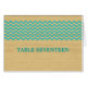 Carte de numéro de table Rustic Chevron moderne et tendance, avec un arrière - plan imprimé art numérique de texture de grain de bois et un motif zig zag de rayures de chevron turquoise. Ce design est parfait pour un mariage rustique mais élégant. Facile à customiser, il suffit d'ajouter le ou les numéros de table appropriés dans le champ de texte fourni. Cliquez sur "Customiser" pour trouver d'autres options de personnalisation.