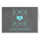 Lunettes geeky chic et sexy Tableau Numéro Carte en turquoise avec un coeur mignon flanqué de deux paires de lunettes nerveux, une paire de manteaux et une paire de ceintures représentant le marié et la mariée sur un arrière - plan de tableau noir. Cette carte table décalée est parfaite pour votre mariage geek ! Facile à customiser, il suffit d'ajouter le ou les numéros de table appropriés dans le champ de texte fourni. Cliquez sur le bouton "Customiser" pour trouver d'autres options de personnalisation.