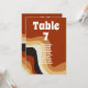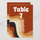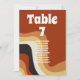 Cette carte de numéro de table super rétro mariage présente des lignes ondulées dans le bronze, le brun et l'orange, qui rappellent le style de vie les années 70 et hippie. Un ajout vintage audacieux avec un script blanc funky à côté des lignes courbes abstraites. Ajoutez les noms de vos invités et ajoutez-les à ce design amusant de tonalité terre.