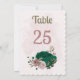 Belle carte de numéro de table romantique avec des fleurs vert émeraude et rose et quelques feuilles. POUR PLUS DE PRODUITS CORRESPONDANTS cliquez sur la collection ci-dessus ou contactez-moi