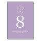 Cette élégante carte de numéro de table de mariage comporte un monogramme encerclé par la ligne lavande avec les initiales, les noms et la date mariage de la mariée et du marié en blanc sur un arrière - plan violet. Utilisez les champs modèle pour ajouter vos détails personnalisés. Cliquez sur "Modifier à l'aide de l'outil de conception" pour modifier les couleurs et les polices. Pour voir d'autres idées de décoration de table mariages comme cette visite www.zazzle.com/dotellabelle