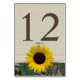 Tournesol Jaune et burlap avec le camouflage de la nature de l'écorce d'arbre et des feuilles, carte de numéro de table de design imprimé pour compléter notre ensemble d'invitation de tournesol de bois, peuvent être personnalisés et commandés individuellement. Toutes les parties de cette carte sont imprimées. Il n'y a ni burlap ni fleur attaché.
