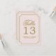 Carte de numéros de table à motif script Rose & Or
