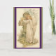 Mettez votre propre message dans cette belle carte de Pâques. L'extérieur montre un ange avec les bras autour d'une croix fleurie couverte et "Une Pâques Joyeuse" en haut à droite. Bordure de carte est un violet profond et un vert antique