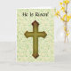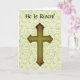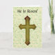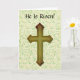 Mon dessin original est présenté sur cette jolie carte, composé d'un fond de feuille vert tonifié vintage avec une croix verte illustrée vintage à l'avant. Les mots 'Il est ressuscité !' sont sur le devant et l'intérieur de la carte indique "Il est ressuscité, en effet ! Je vous souhaite un jour de Pâques béni et joyeux !" pour une belle carte de Pâques de foi sincère.