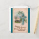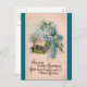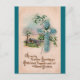 Cette image de carte de Pâques chrétienne vintage montrant une croix faite de fleurs bleues avec une belle ferme au printemps en arrière-plan est réimprimée ici pour envoyer une belle salutation de Pâques.