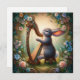 Carte de Pâques Art Nouveau lapin de harpe Whimsic