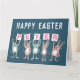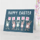 Carte de Pâques pour quelqu'un avec un nom de 5 lettres. Carte de Pâques amusante avec une illustration de lapins en rose et bleu. Les lapins tiennent des cartes pour épeler le nom.
