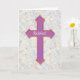 Mon dessin original est présenté sur cette jolie carte, composé d'un fond rose de style vintage avec une croix lavande violette illustrée rustique devant. Les mots 'Réjouissez-vous !' sont sur la croix et l'intérieur de la carte indique "Que votre Pâques soit un jour saint et béni en souvenir de notre Seigneur. Joyeuses Pâques !" pour une belle carte de Pâques de foi sincère.