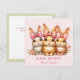Carte Pâques mignonne avec un joli lapin joyeux filles dans les couleurs rose, beige et vert. Le texte à l'arrière. Personnalisez facilement tout le texte ou laissez-en une partie vide. - Kate Eden Art