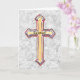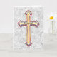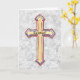 Mon dessin original est présenté sur cette jolie carte, composé d'un fond ton gris vintage avec une croix rustique dorée illustrée vintage au premier plan. Le mot 'Réjouissez-vous !' est sur la croix et l'intérieur de la carte indique "Nous nous souvenons du sacrifice de Jésus et rendons grâce pour ce qu'Il a fait pour nous. Joyeuses Pâques !" pour une carte de Pâques de foi sincère.