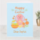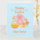 C'est la carte de Pâques Lapin Rose et Fleurs Joyeuses.